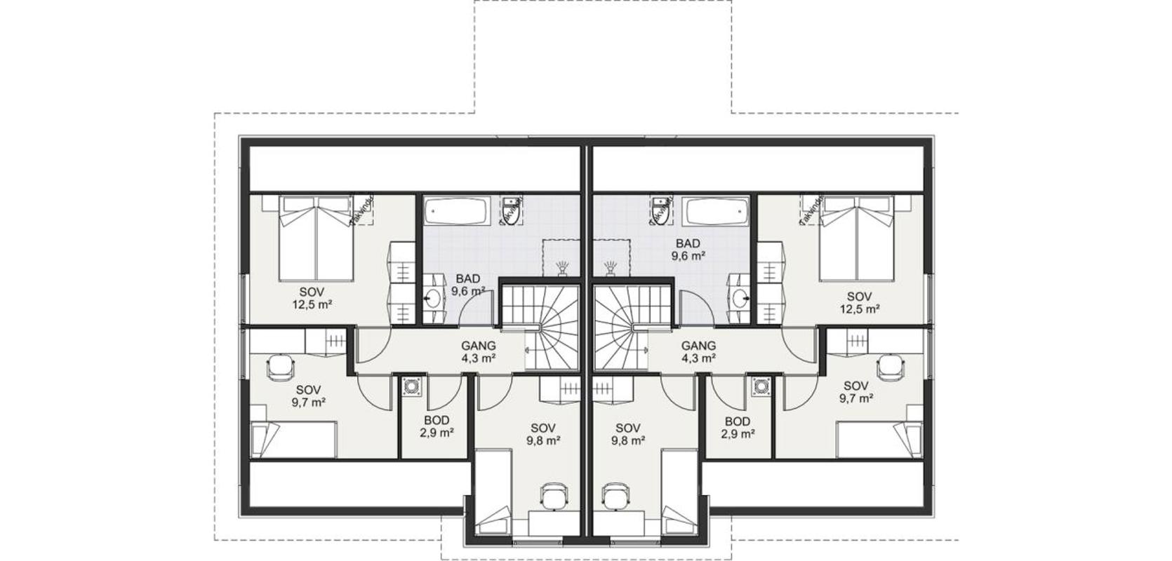 Mesterhus Norhild er en herskapelig og smart tomannsbolig med utbygd midtseksjon og svært praktisk planløsning.