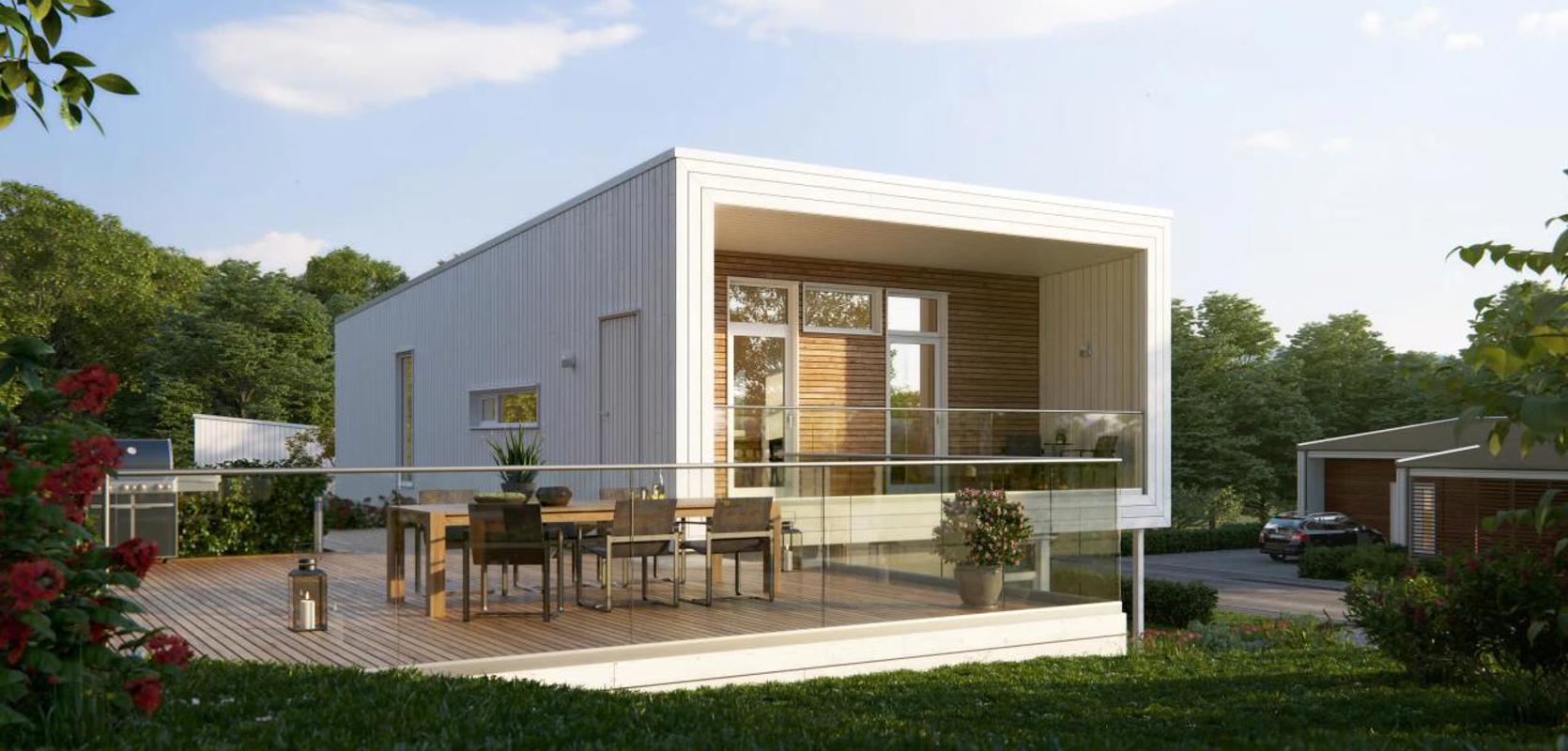 Signatur 308 er spesielt tilpasset en skrå tomt, og hovedinngangen er plassert i underetasjen. Under balkongen på hovedplanet finner du en romslig hall med inngang til en tv-stue, et stort bad med tilgang til eget vaskerom og to praktiske soverom. Det tredje soverommet ligger innenfor tv-stuen. På utsiden er det også en egen sportsbod, perfekt for oppbevaring av sportsutstyr eller hagemøbler.